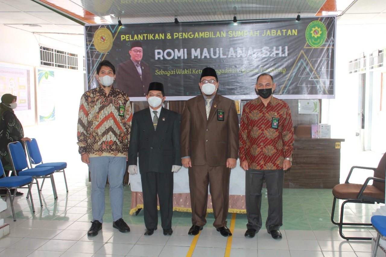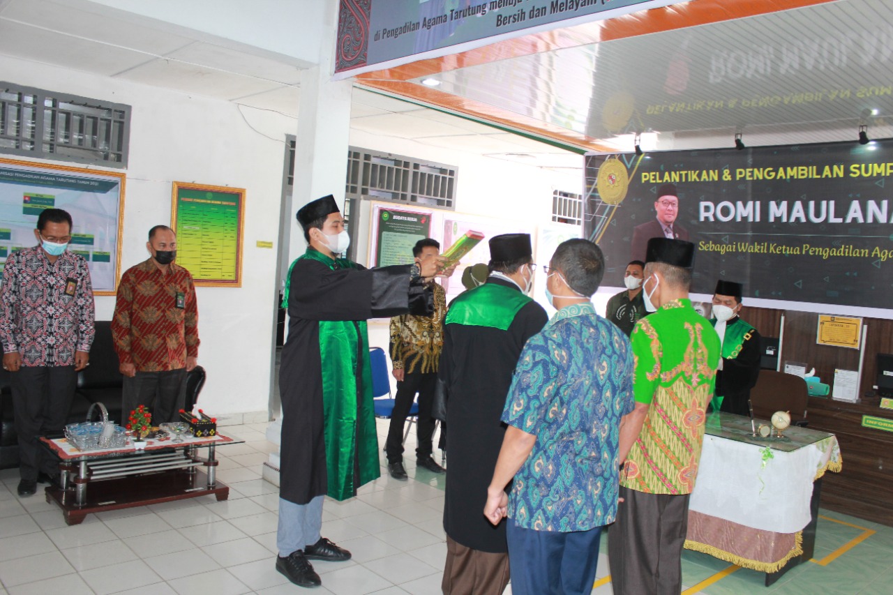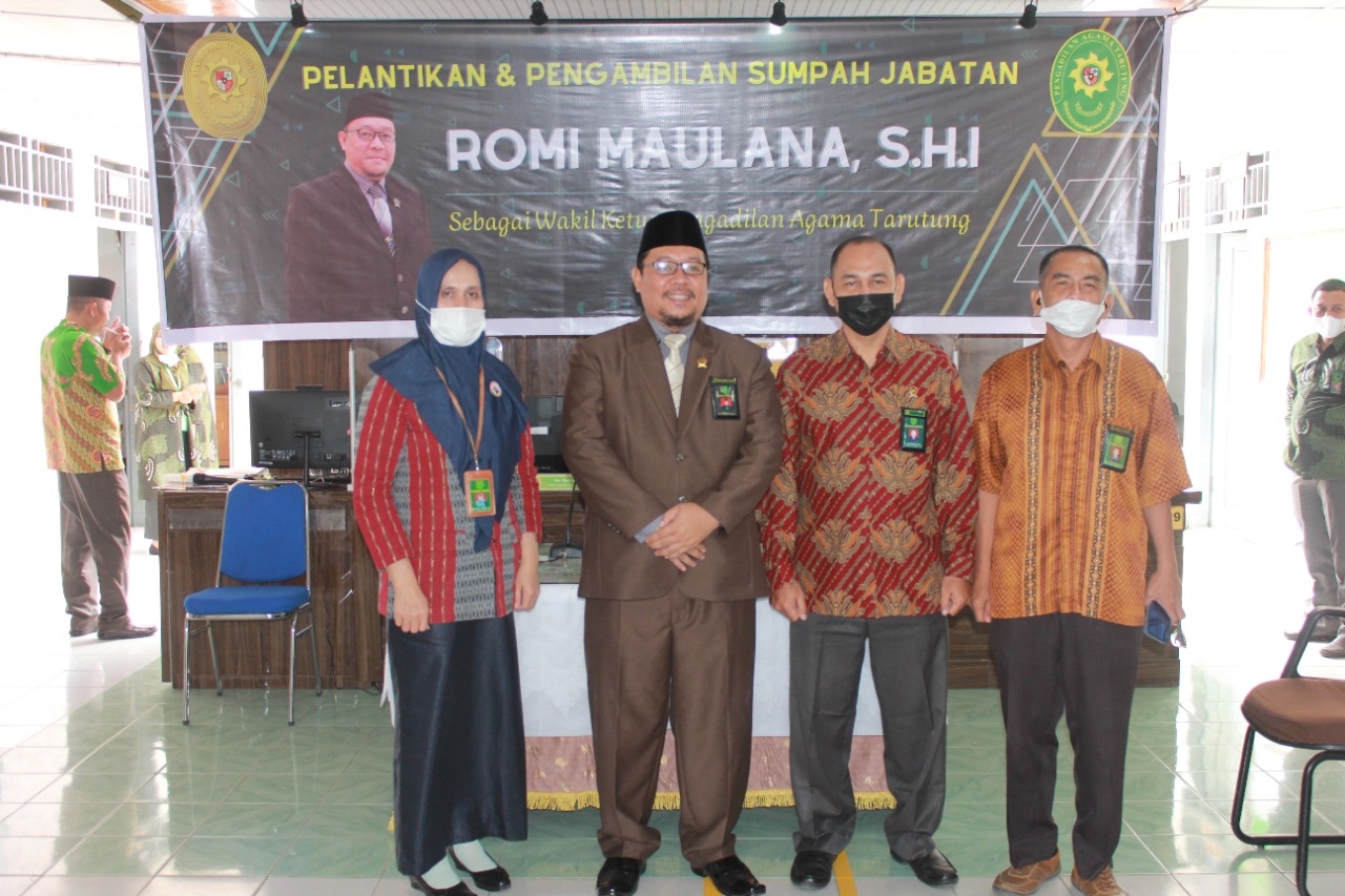 Balige, 09 September 2021. Wakil Ketua, Panitera, Panmud Hukum dan Sekretaris Pengadilan Agama Balige menghadiri acara Pelantikan dan Pengambilan Sumpah Jabatan Wakil Ketua Pengadilan Agama Tarutung. Dalam acara tersebut, Romi Maulana, S.H.I dilantik menjadi Wakil Ketua Pada Pengadilan Agama Tarutung.