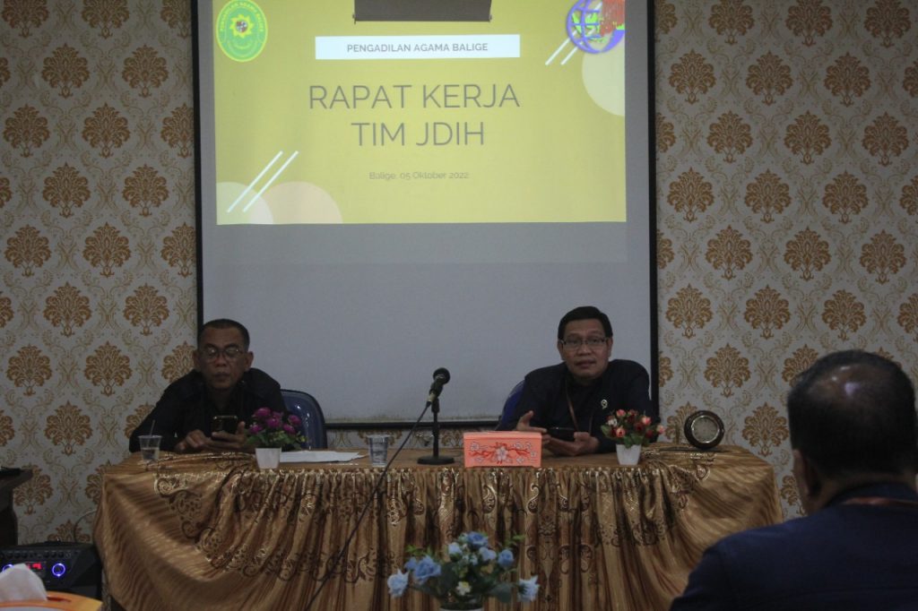 Rabu, 05 Oktober 2022, Pengadilan Agama Balige mengadakan Rapat Kerja TIM JDIH bertempat di Ruang Media Center Pengadilan Agama Balige lt. II dan dihadiri oleh TIM JDIH Pengadilan Agama Balige. Rapat dimulai tepat pukul 15.00 WIB yang dipimpin langsung oleh Ketua Pengadilan Agama Balige, Ramsyah Sihombing.S.H., M.H. di dampingi Panitera Muda Hukum Pengadilan Agama Balige, Khairul Azhar Siregar, S.H.