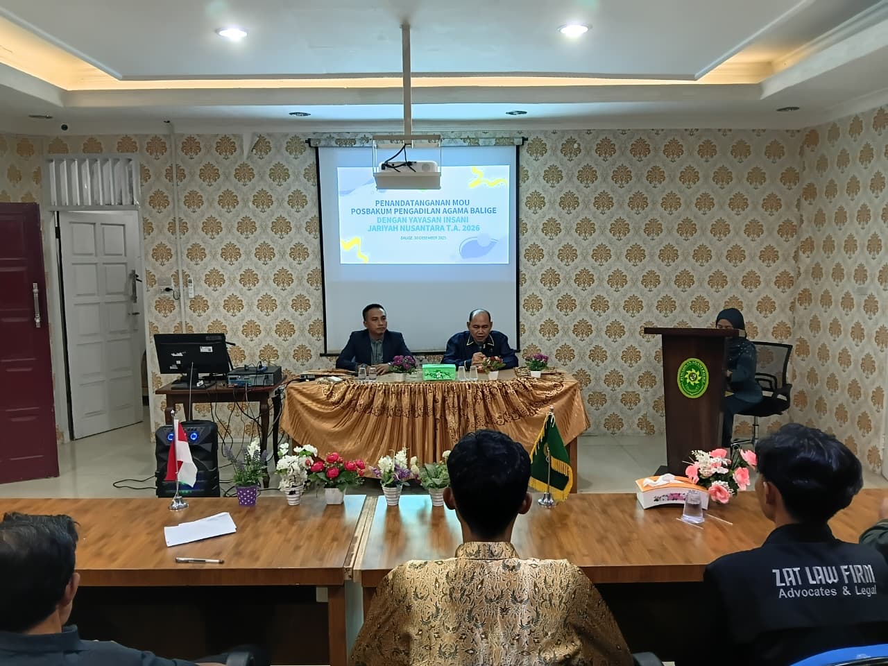 Balige, 30 Desember 2025 – Pengadilan Agama Balige melaksanakan penandatanganan kerja sama (MoU) POSBAKUM (Pos Bantuan Hukum) dengan Yayasan Insani Jariyah Nusantara untuk TA. 2026 di ruang media center Pengadilan Agama Balige.