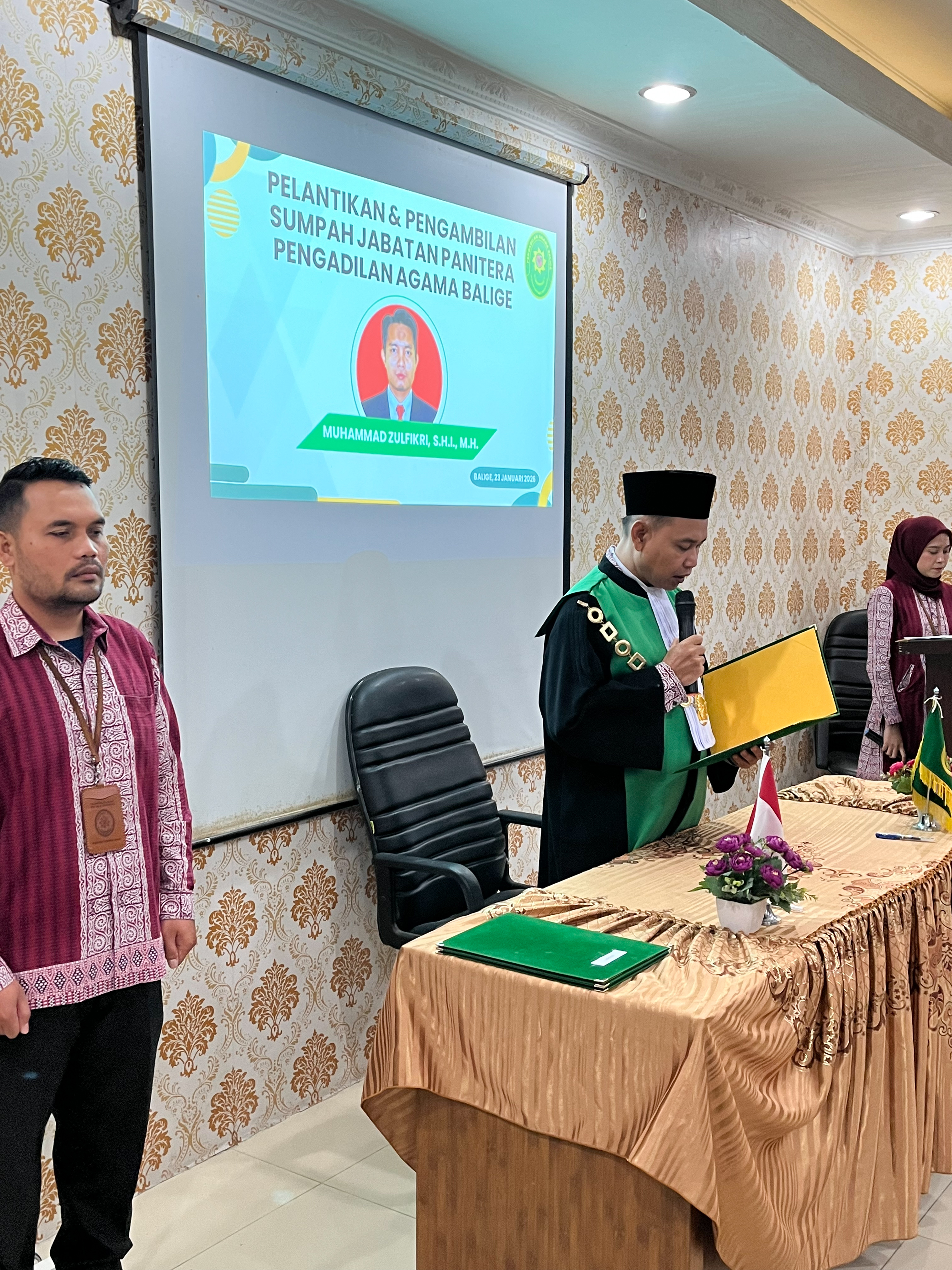 Balige, 23/01/2026 – Pengadilan Agama Balige melaksanakan Pelantikan dan Pengambilan Sumpah Jabatan Panitera Pengadilan Agama Balige, bertempat di Ruang Media Center Pengadilan Agama Balige.